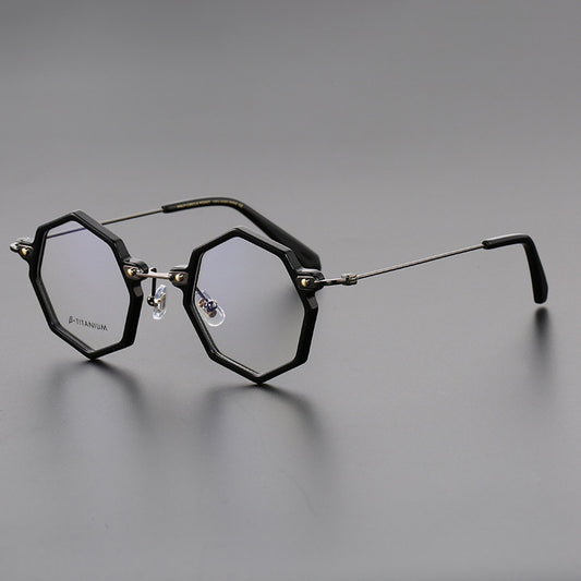 Retro Ultra Light Pure Titanium Personality Polygon With Myopia Plate Glasses