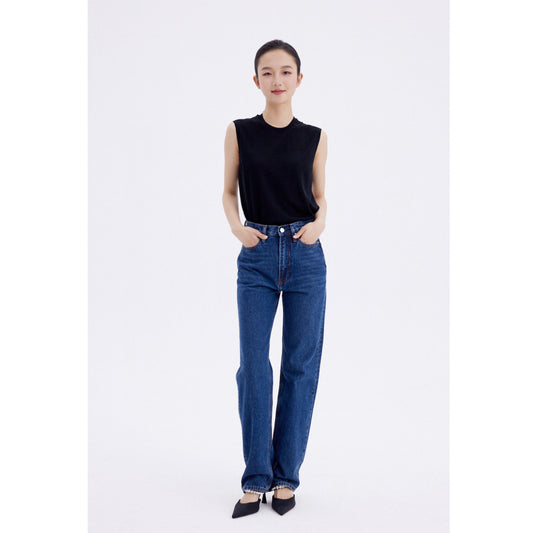 Simple Style Women's Dark Blue Small Straight-leg Jeans