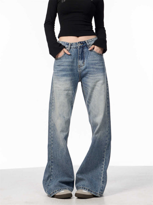 Retro Washed Distressed High Waist Jeans Women's, Blue Trousers