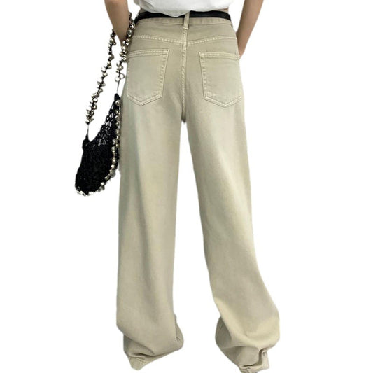 Fashion Women's Solid Color High-waist Straight-leg Trousers
