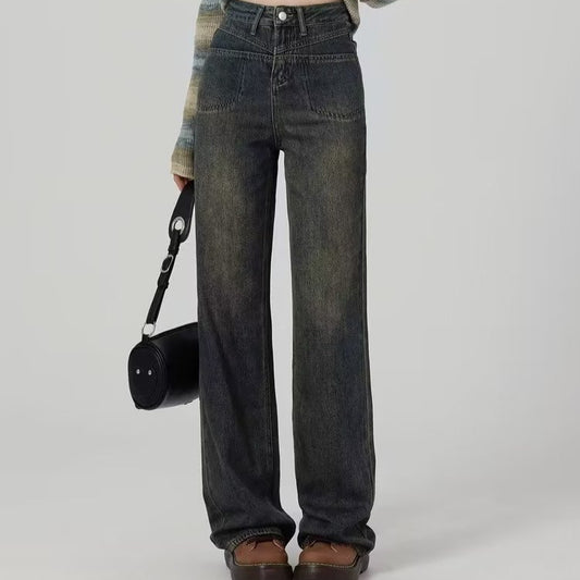 Loose Design Slimming Worn Looking Washed-out Wide Leg Pants