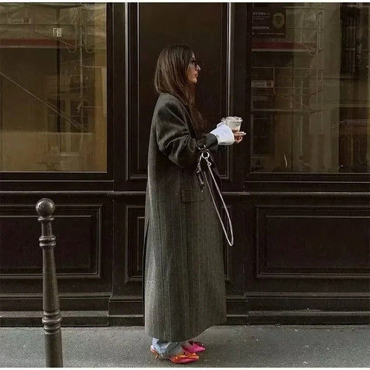 Women's Fall Winter Coat Fashion Polo Collar Double-breasted Extended Trench Coat