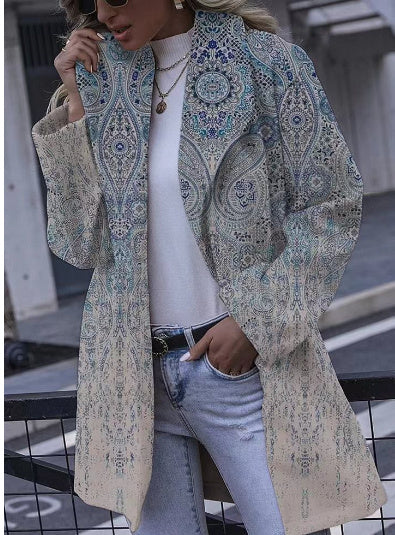 Autumn And Winter New Women's 3D Printed Ethnic Style Long Sleeve Top