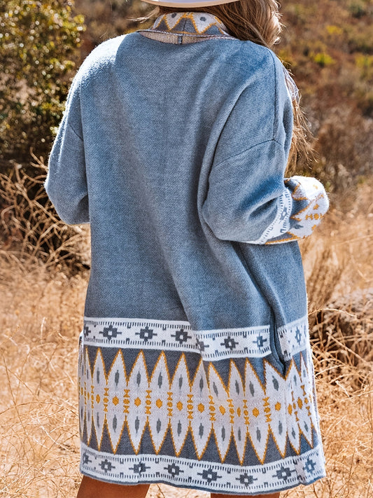 Ethnic Style Printed Long Sleeve Knitted Sweater Cardigan Coat