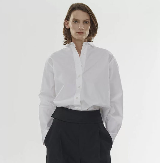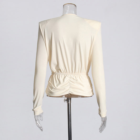 Top Fashion Swing Collar Padded Shoulder Pleating Slim Fit Slimming Shirt For Women