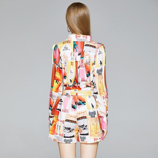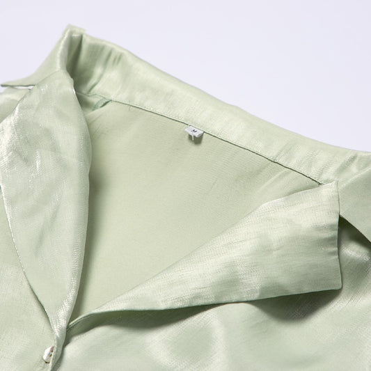 Cotton And Linen Long Sleeved Shorts Two-piece Shirt