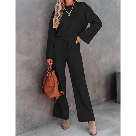 Autumn And Winter New Fashion All-match Round Neck Top Loose Casual Trousers